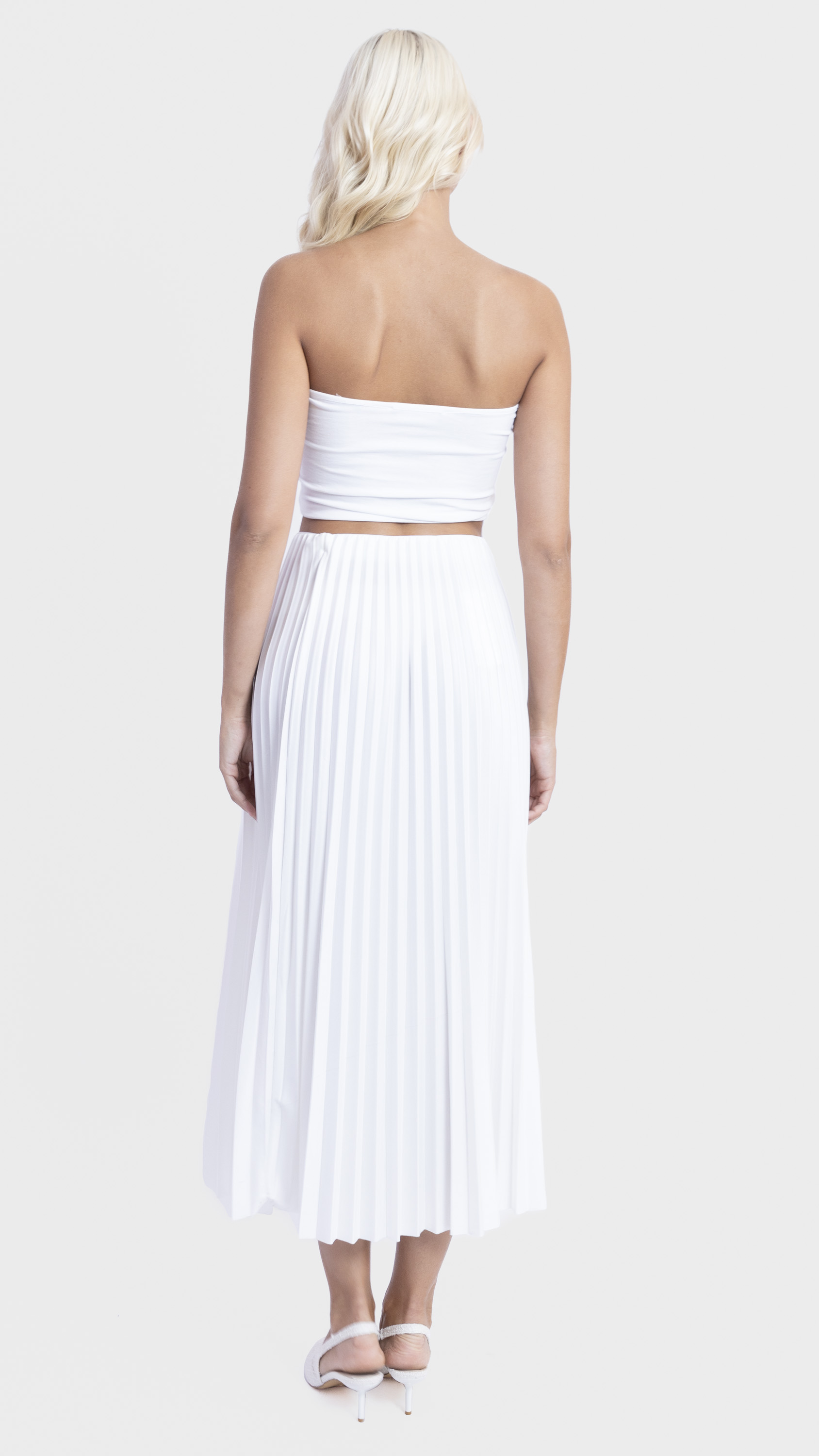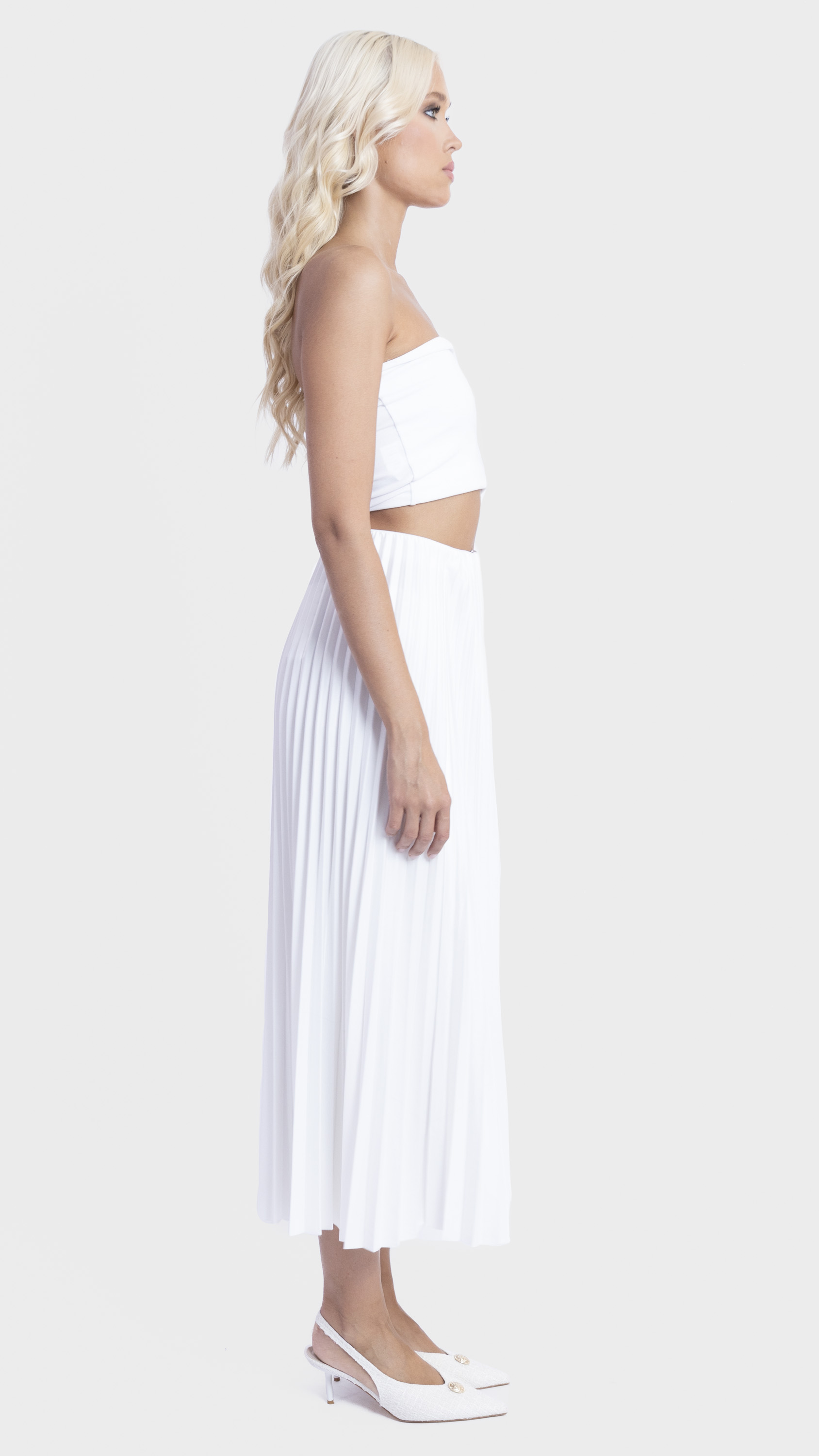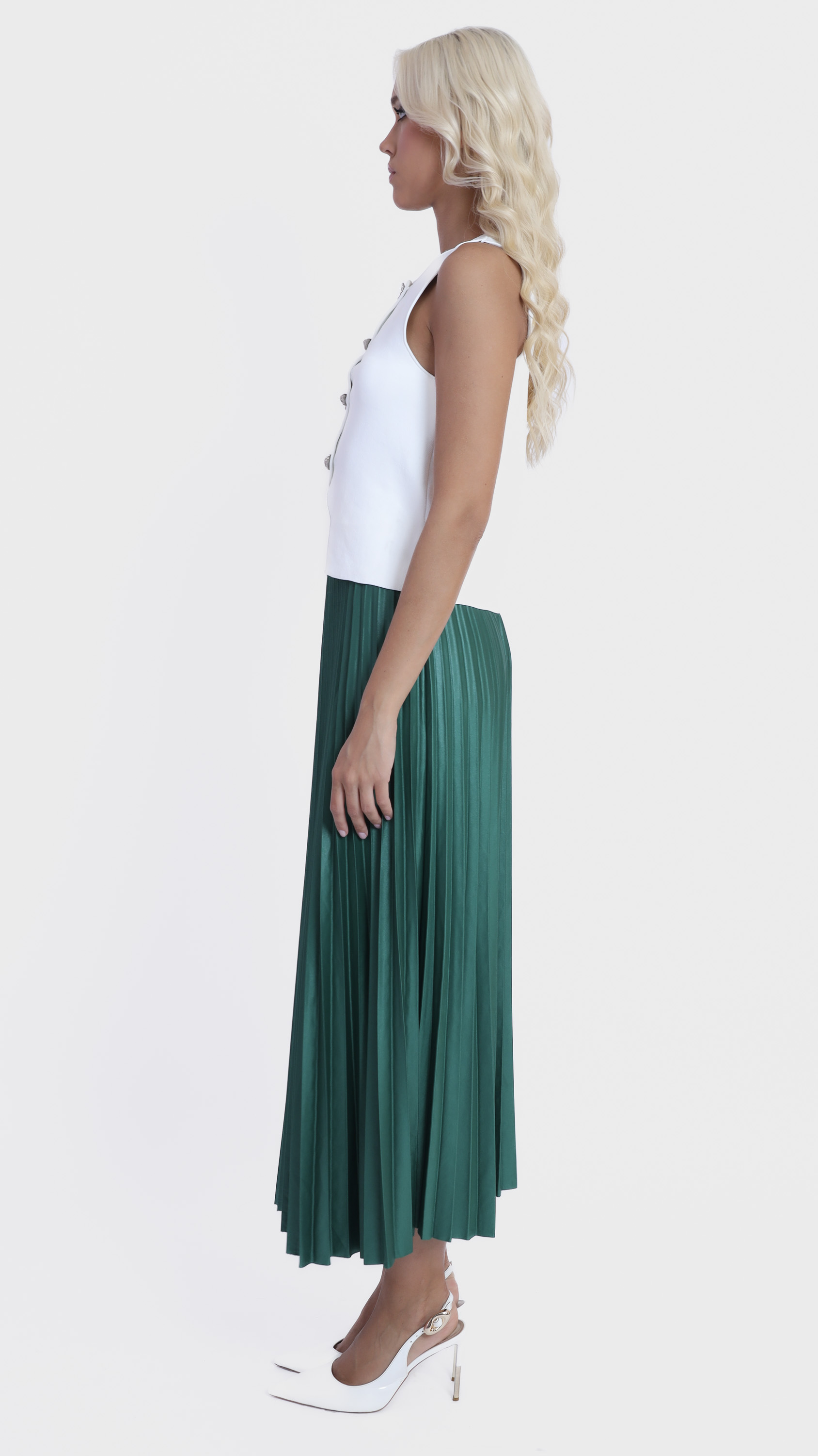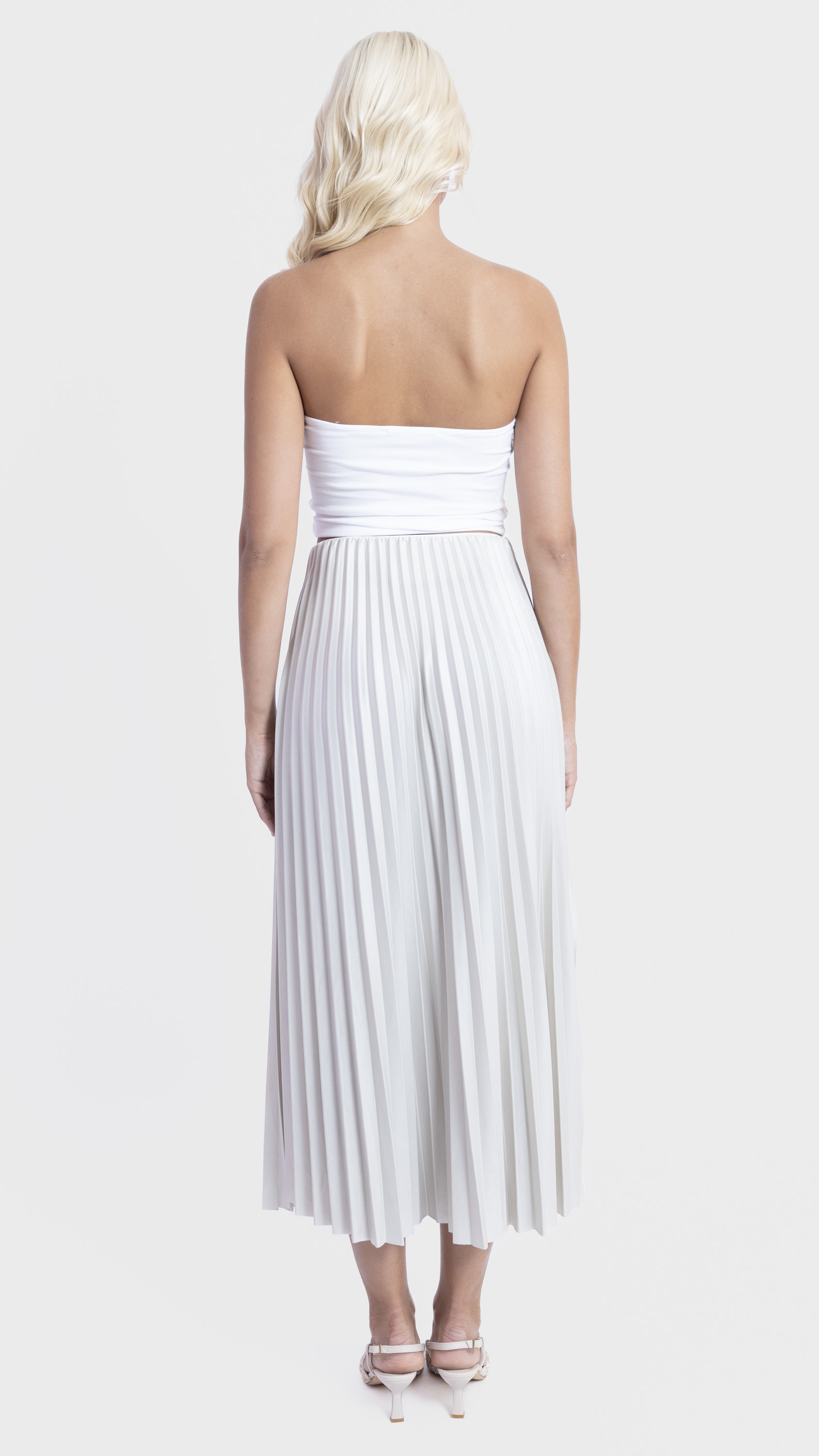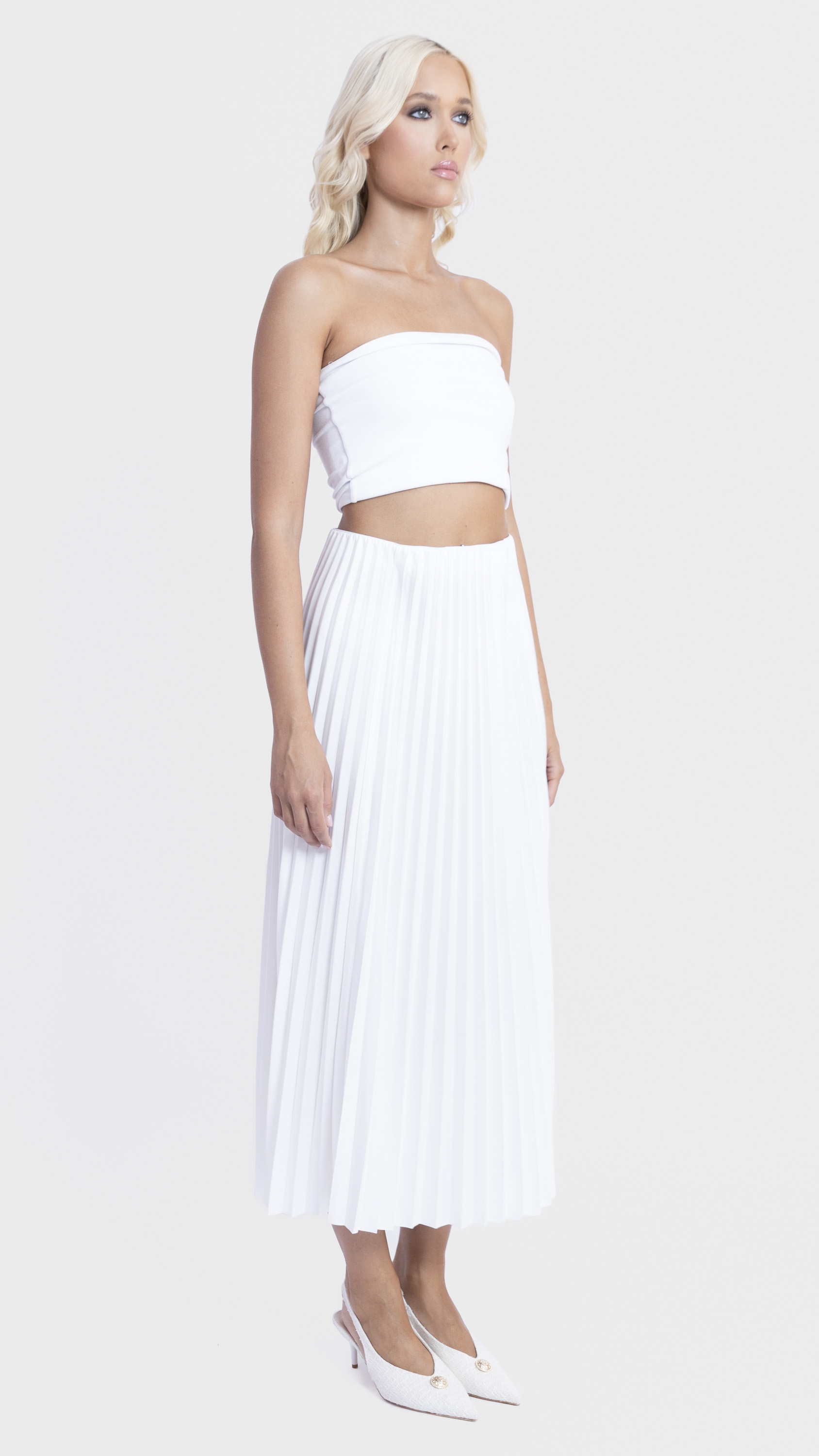Add timeless elegance to your wardrobe with this pleated midi skirt.