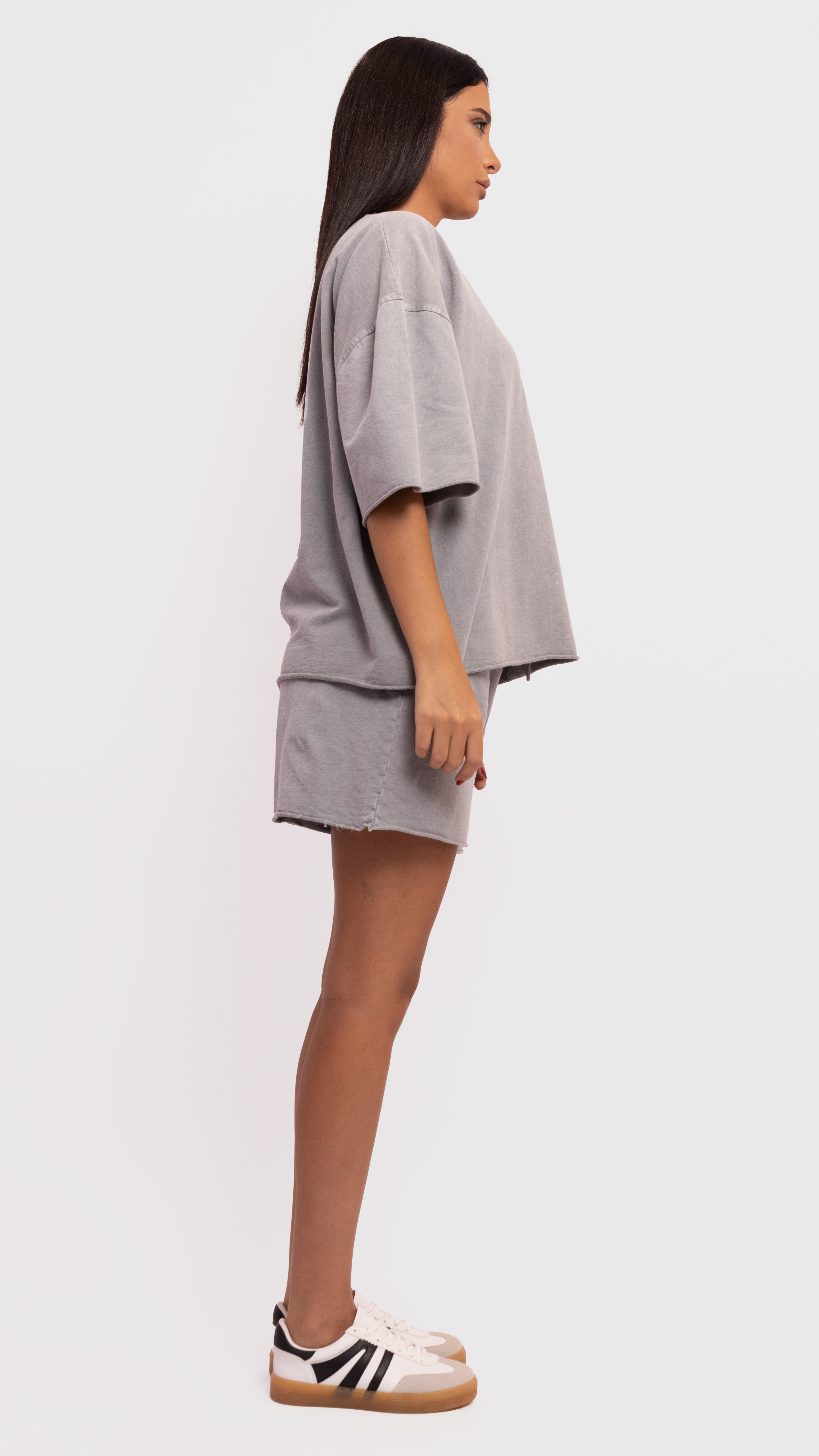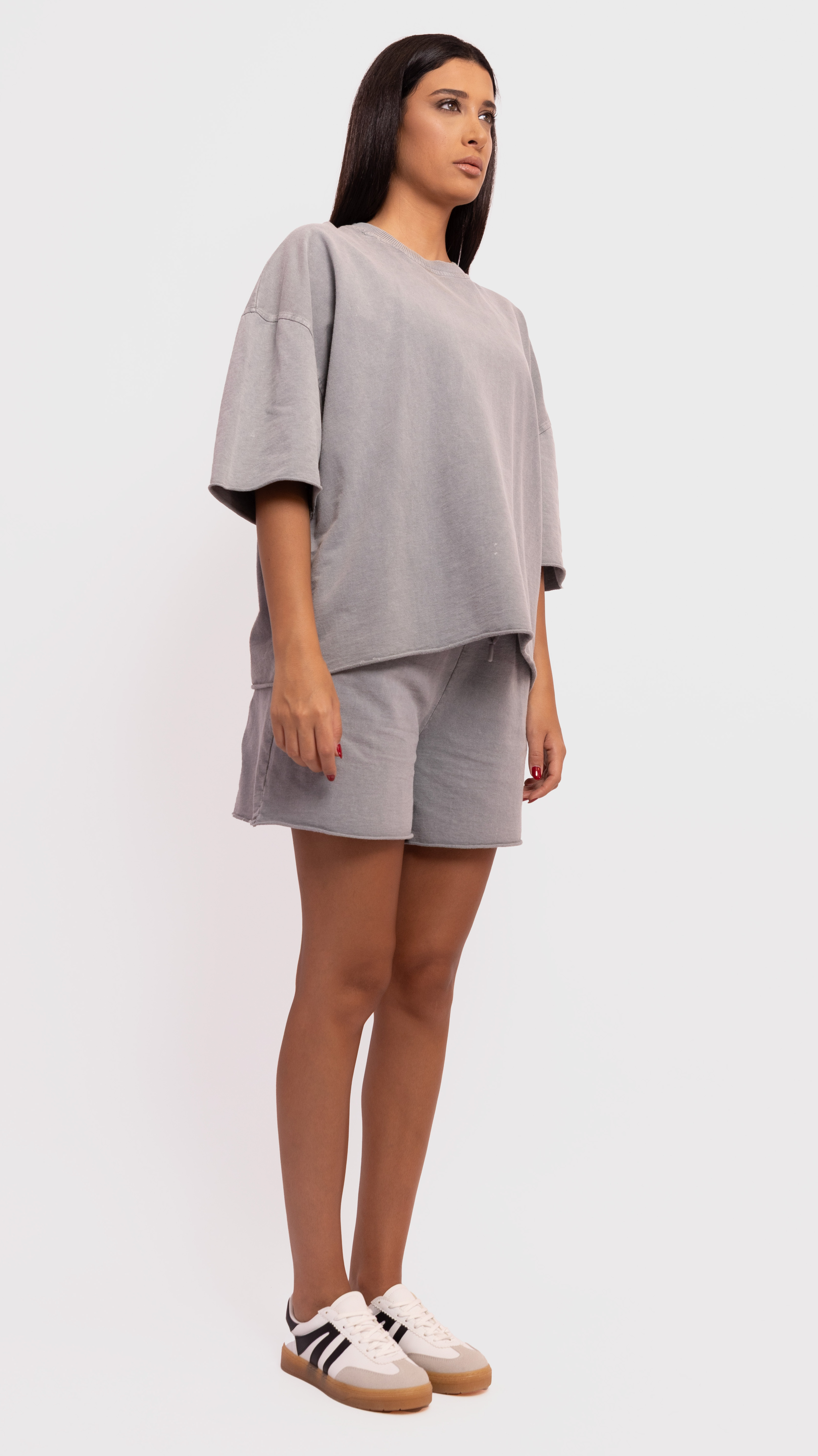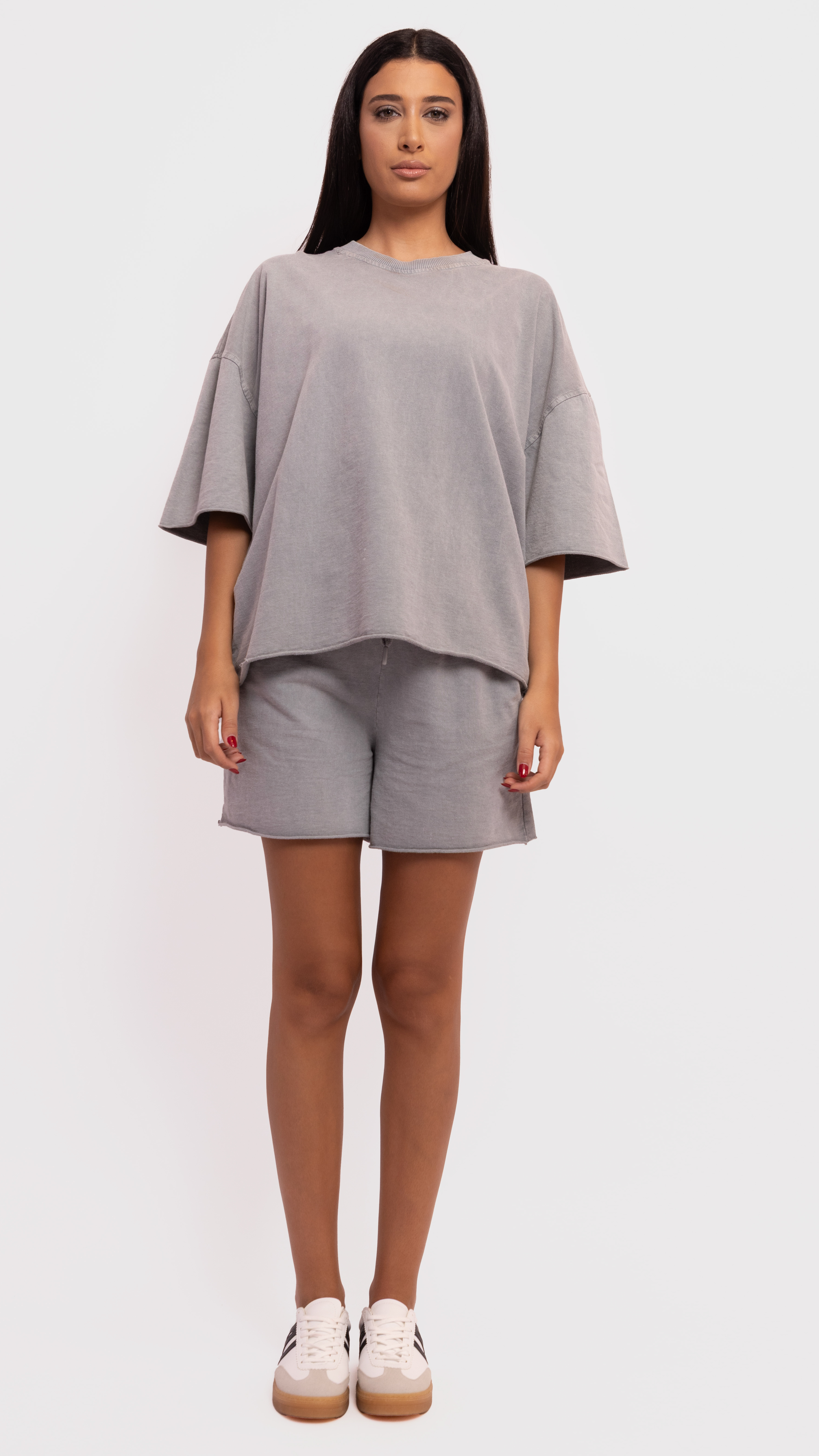 Keep it cozy and stylish with this oversized tee and drawstring shorts set — the perfect match for laid-back days and comfy vibes.