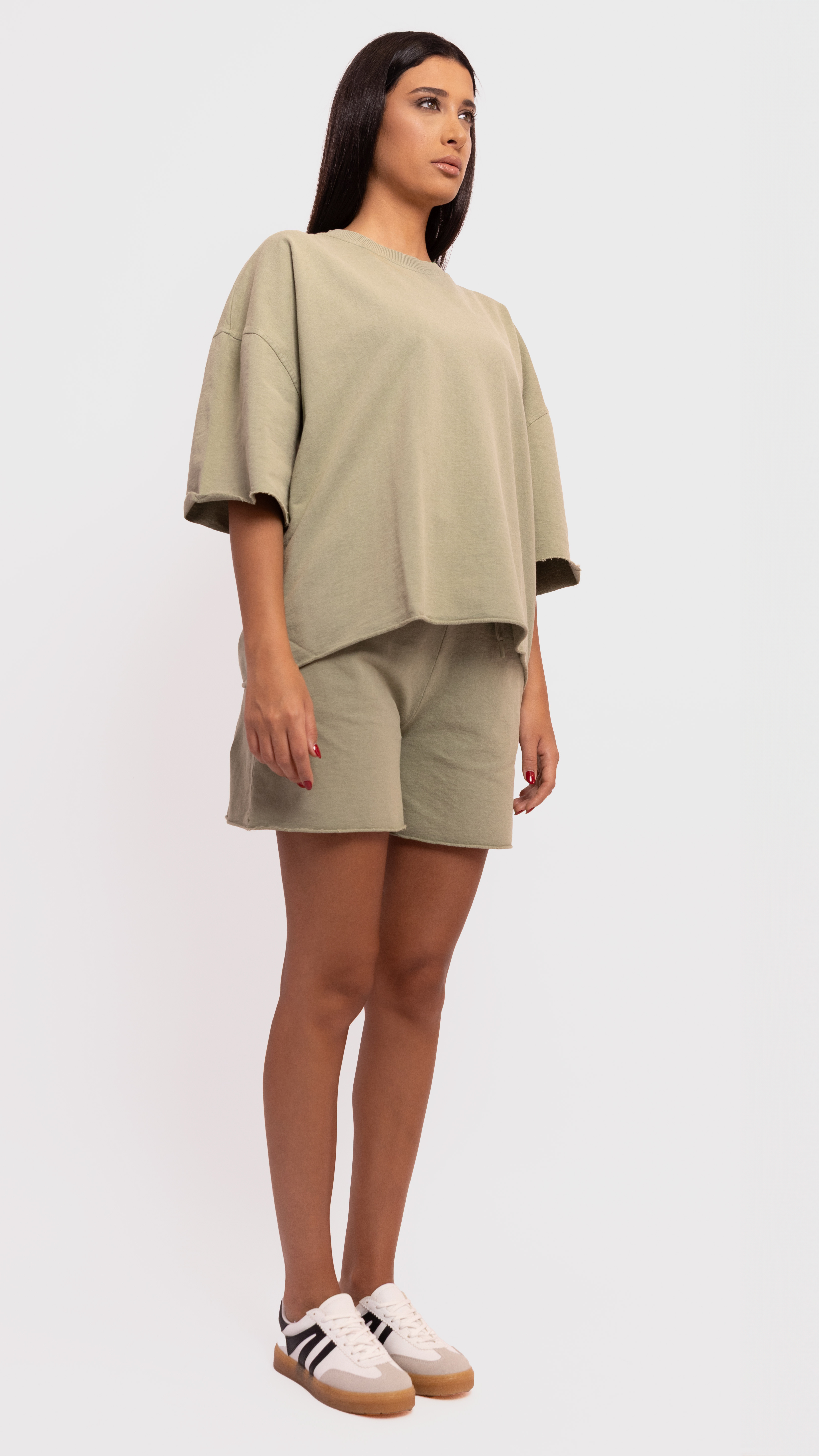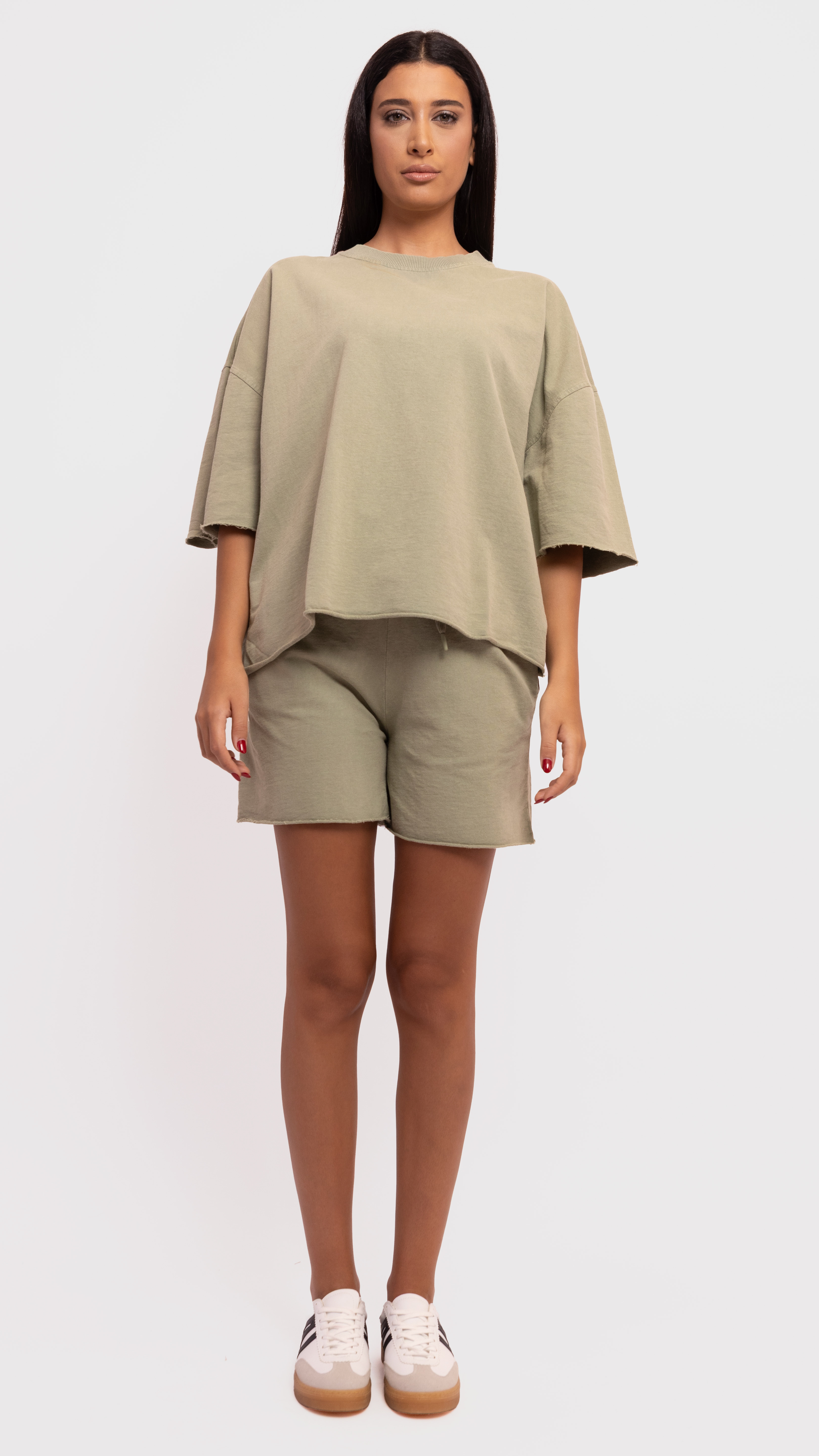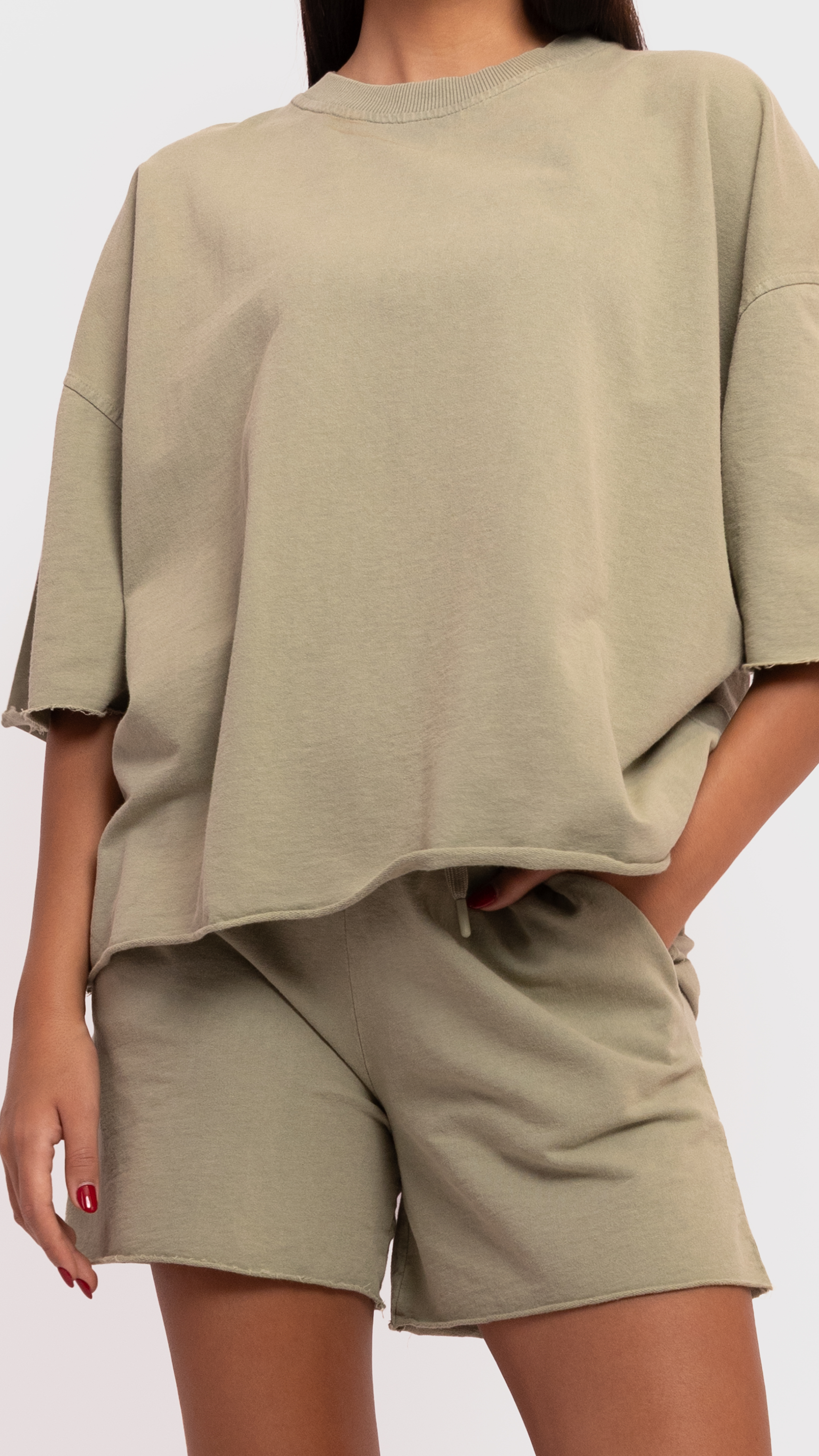 Keep it cozy and stylish with this oversized tee and drawstring shorts set — the perfect match for laid-back days and comfy vibes.