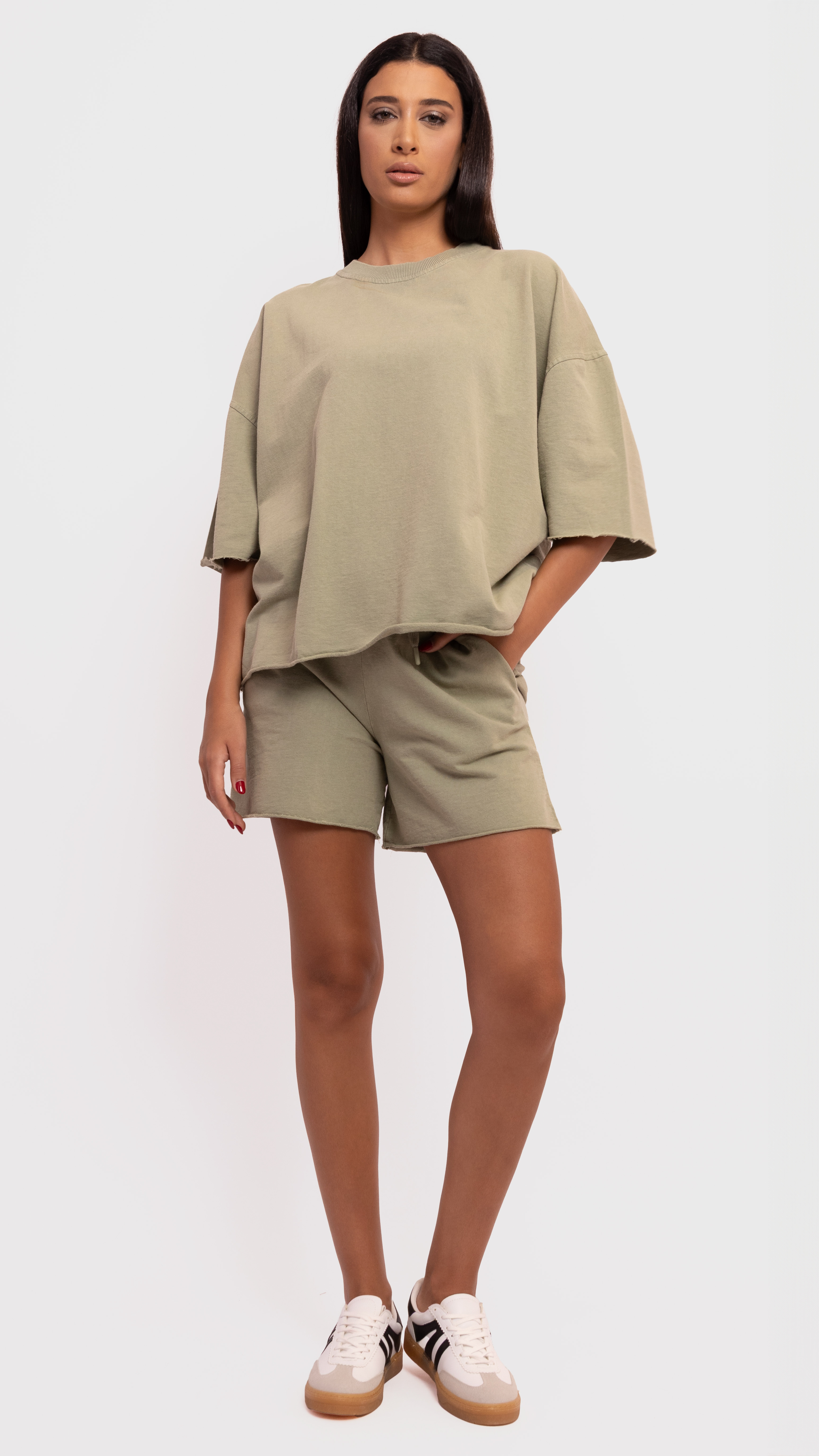 Oversized T-Shirt & Drawstring Shorts Loungewear Set