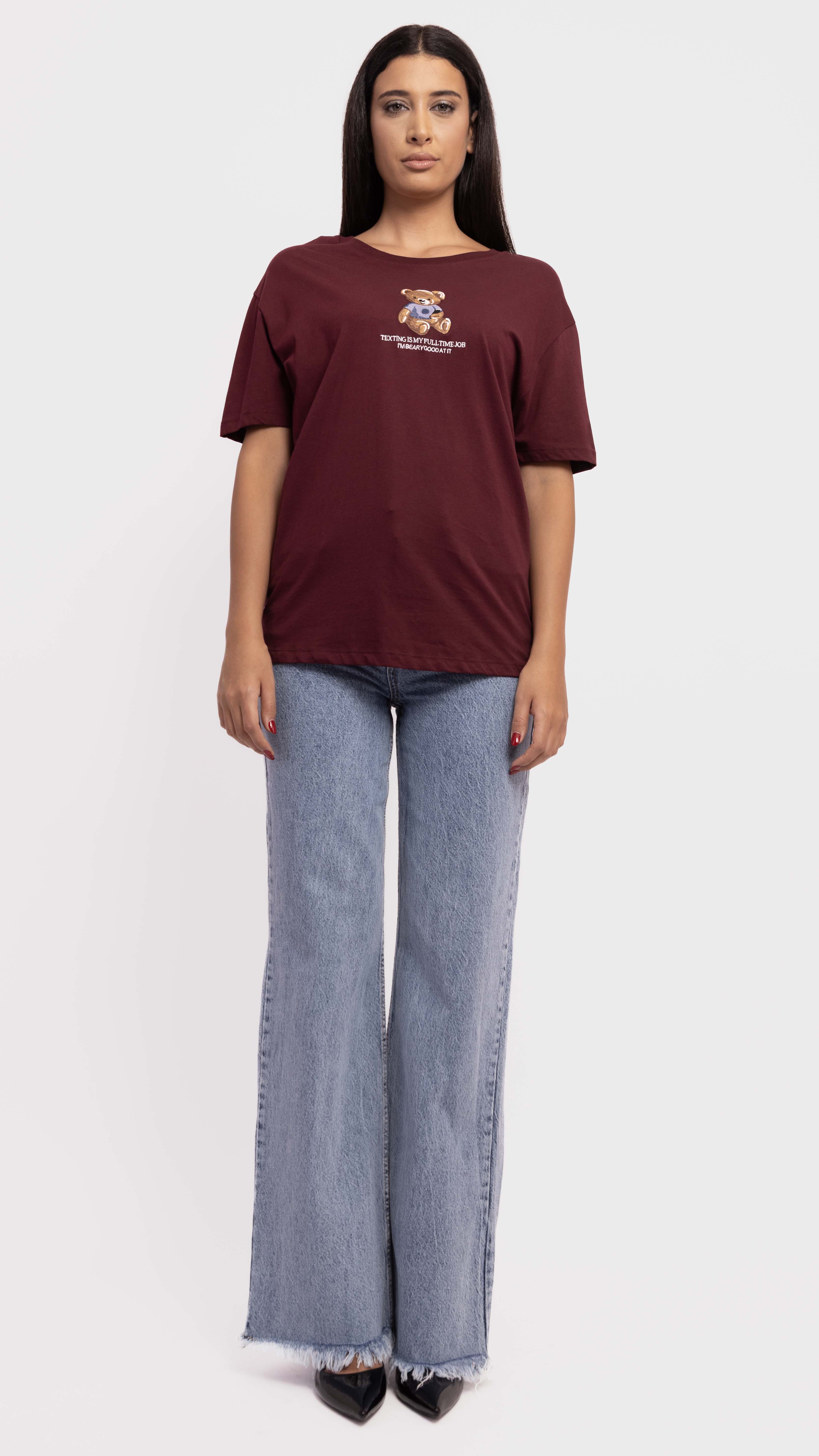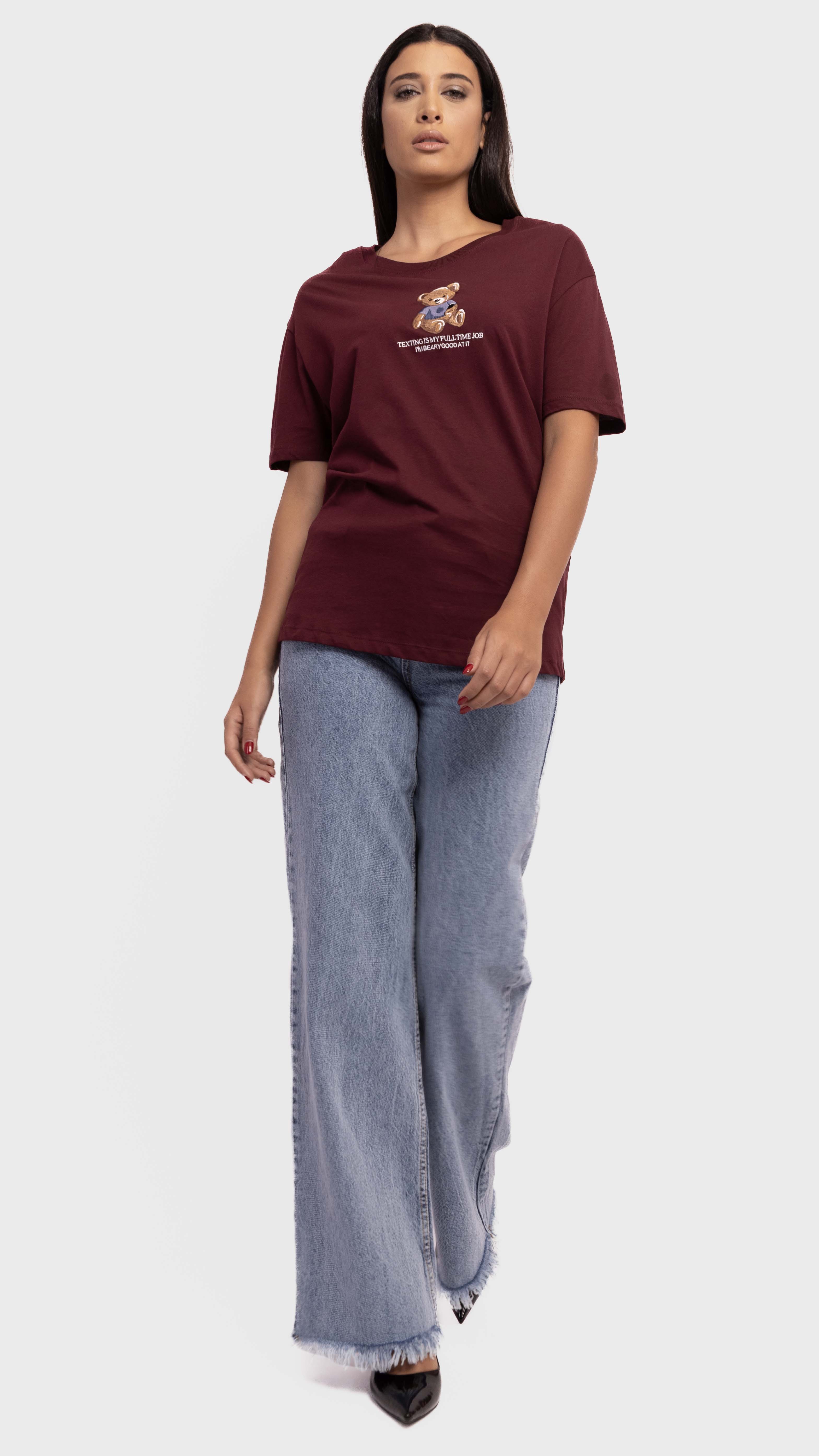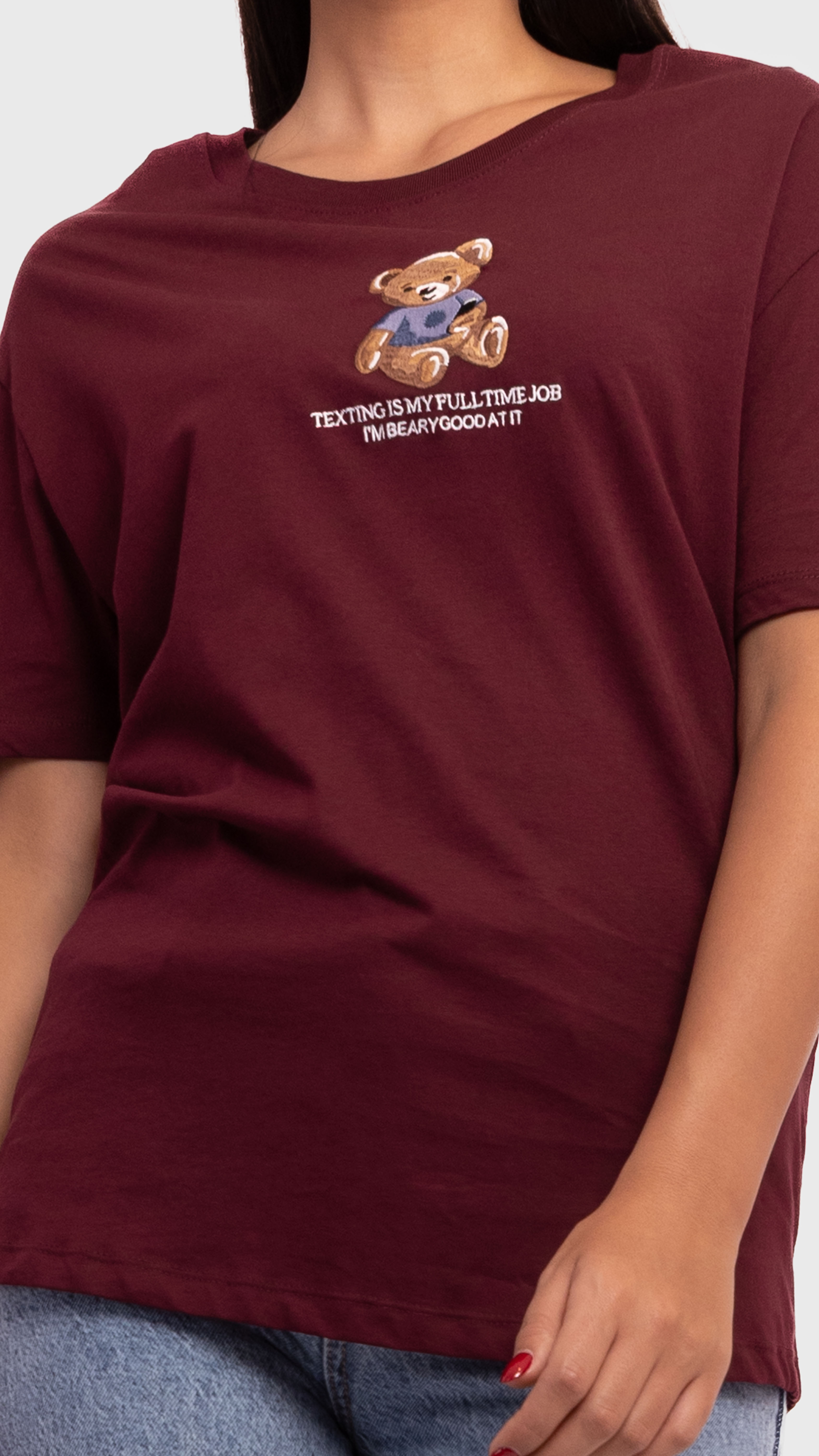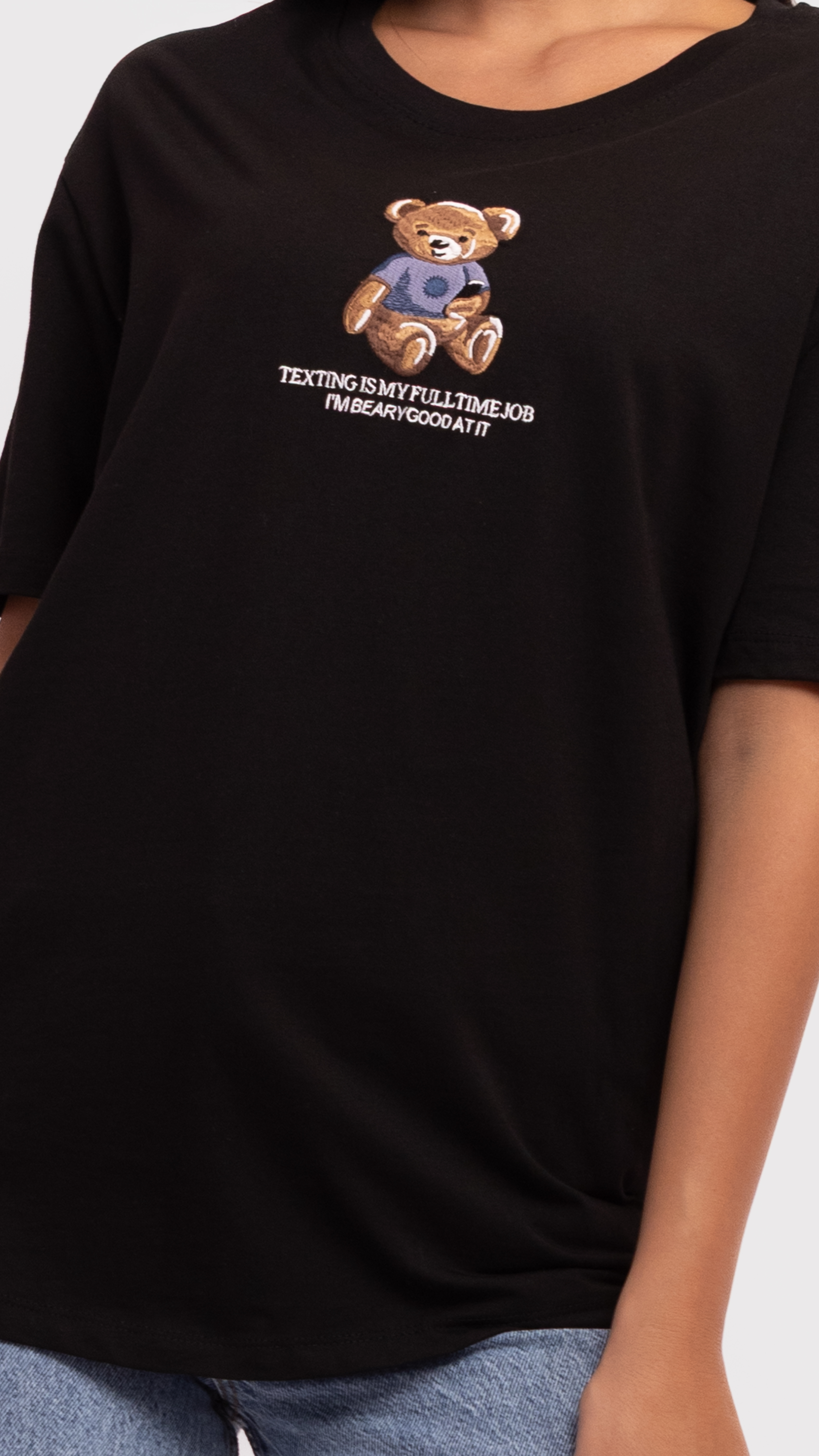 Keep it cute and comfy with this Teddy Graphic Embroidered Tee.