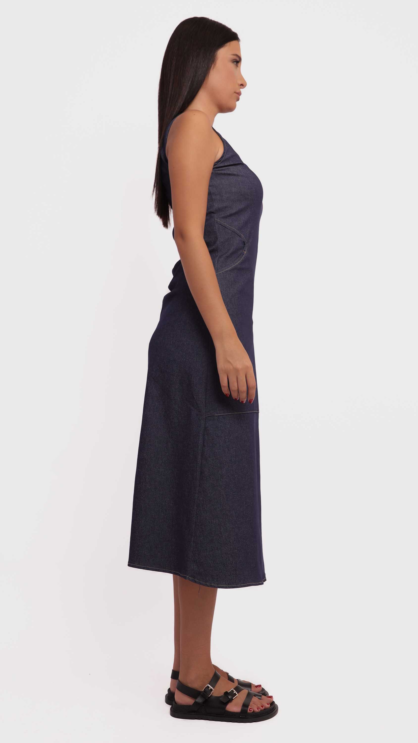 Elevate your casual wardrobe with this timeless sleeveless denim dress.