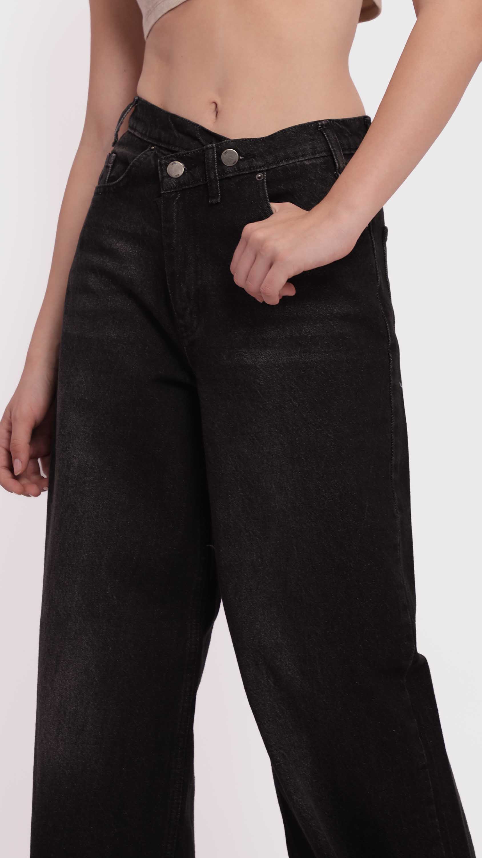 Add a bold twist to your denim edit with these Crossover Waist Wide-Leg Jeans. Designed with a unique crossover waistband and a flattering high-rise cut, they bring effortless edge to your everyday wardrobe.