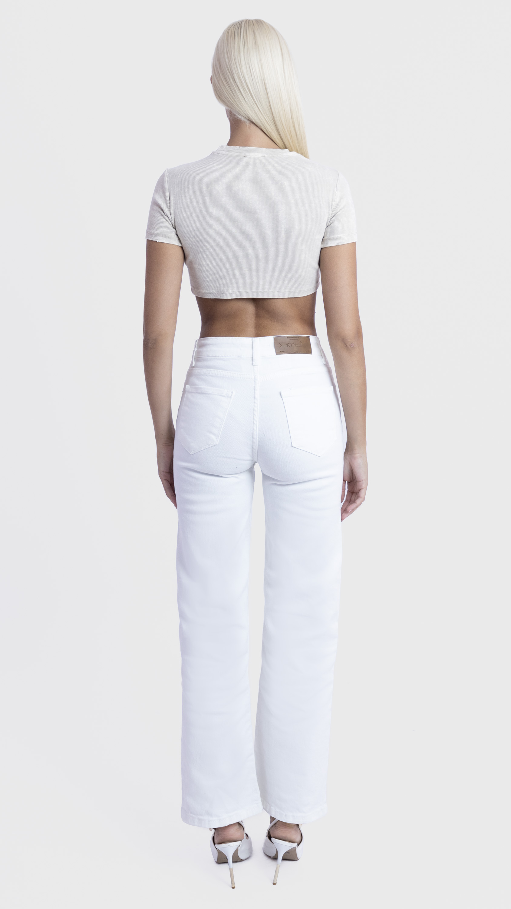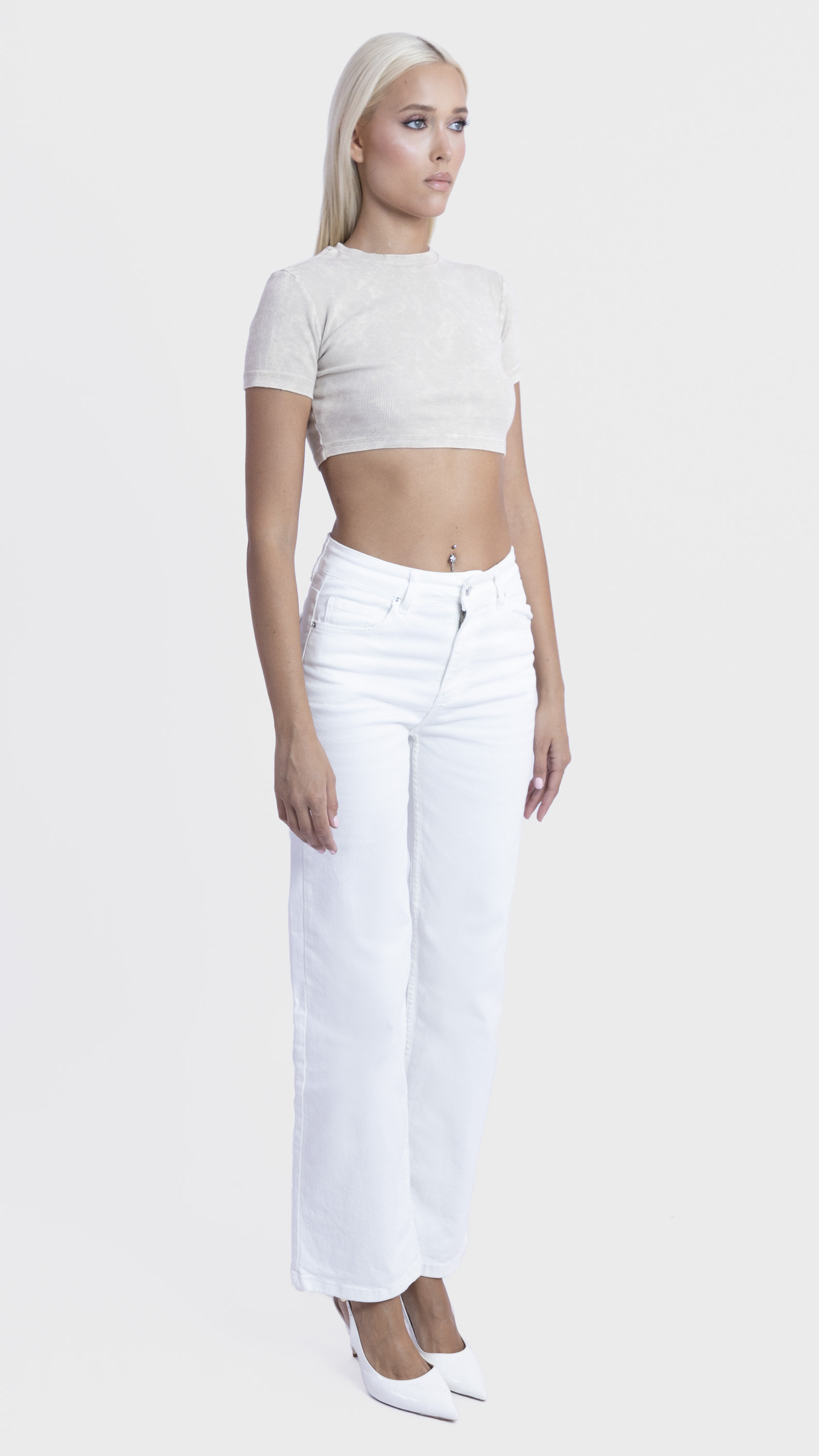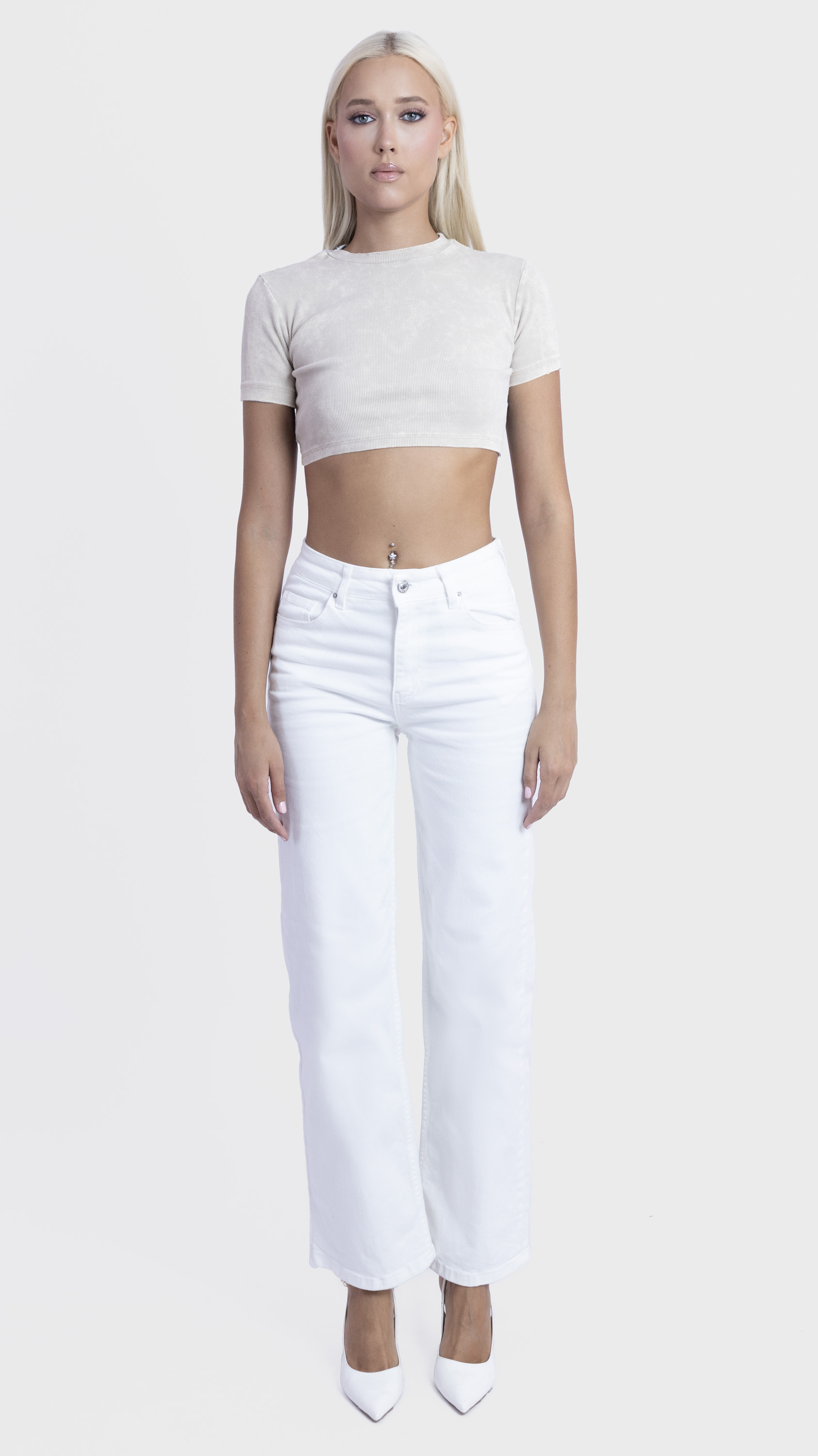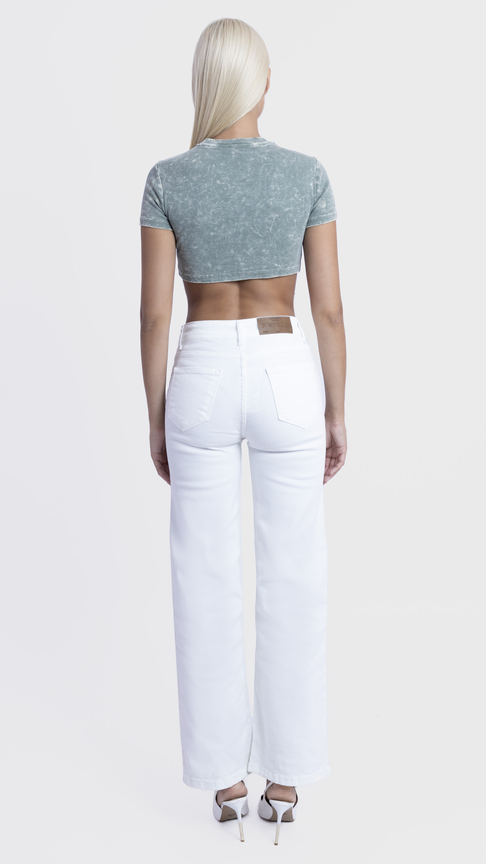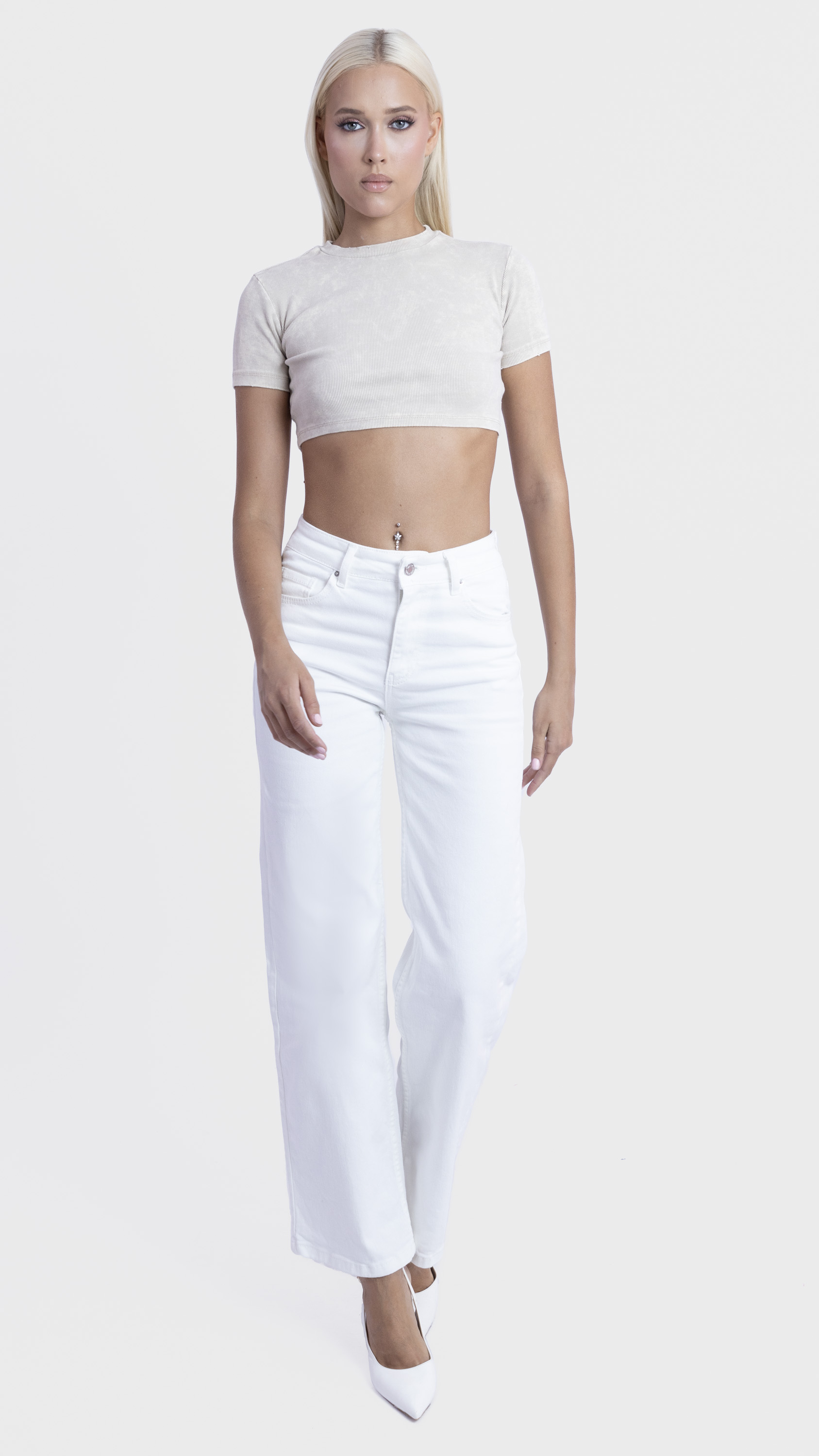 Update your off-duty look with this ribbed cropped T-shirt, featuring an edgy acid-wash finish, soft stretch fabric, and a flattering fitted silhouette.